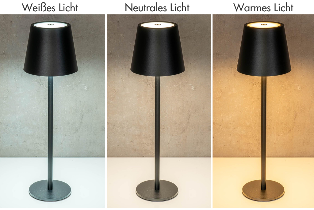 Die Flaschenlampe vereint Stil und Funktion. Sie bietet Dir drei Lichtfarben – Weiß, Neutral und Warm – und lässt sich stufenlos dimmen. Perfekt, um in jedem Raum die passende Atmosphäre zu schaffen.